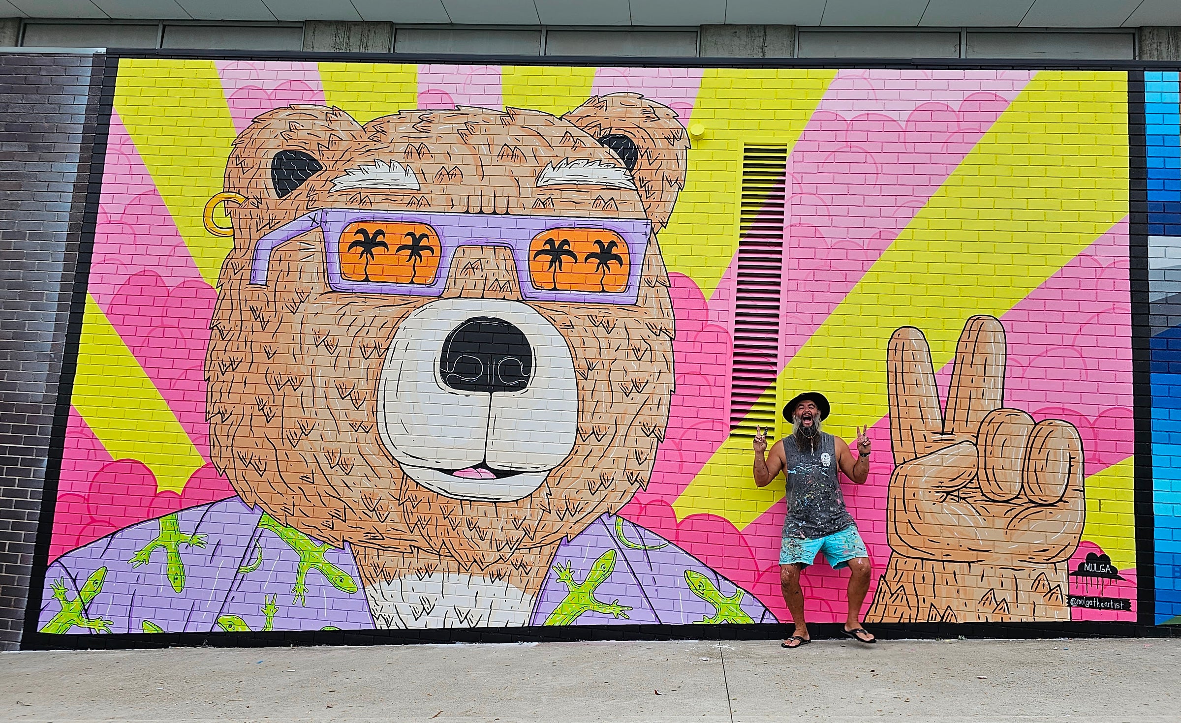 Mulga is based in Sydney, Australia and travels all over the world painting his unique Australian creations. Mulga paints murals, live paints at events, runs school workshops, collabs with rad brands and does private commissions in his spare time.