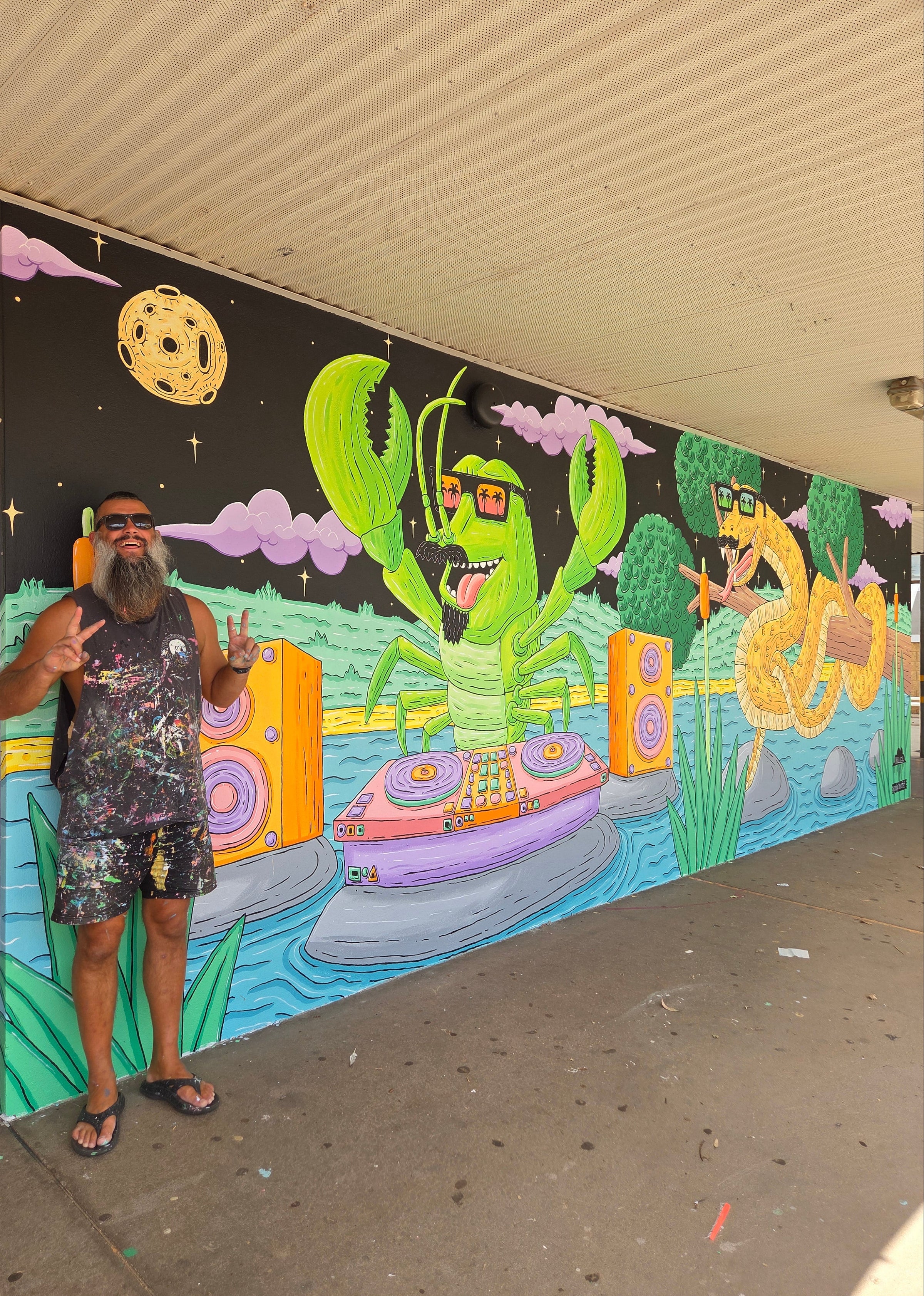 Mulga is based in Sydney, Australia and travels all over the world painting his unique Australian creations. Mulga paints murals, live paints at events, runs school workshops, collabs with rad brands and does private commissions in his spare time.